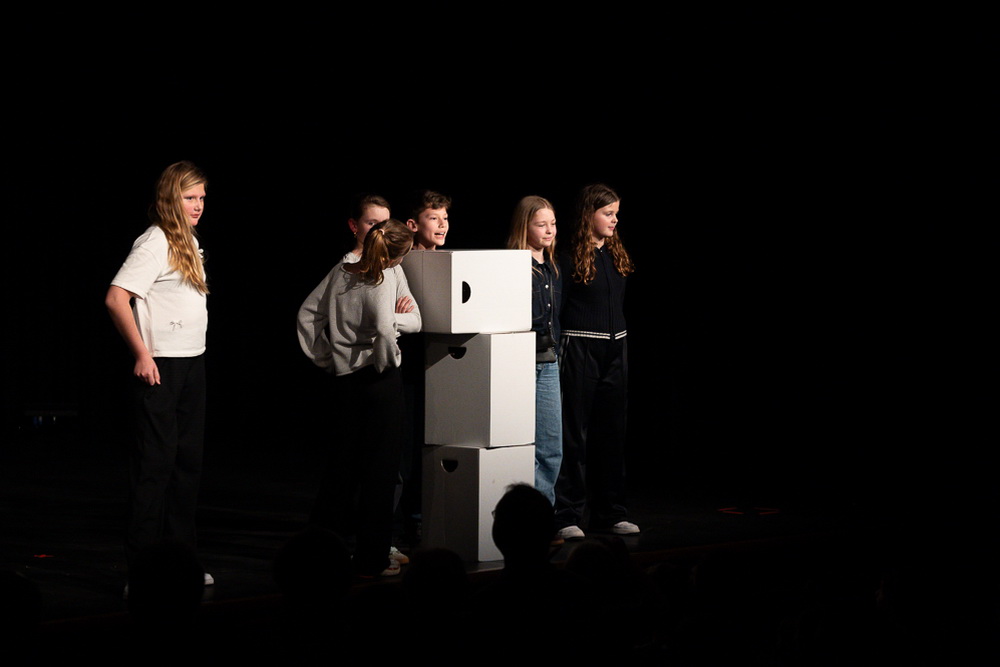 Ein besonders gelungenes Beispiel für fächerübergreifendes Arbeiten war die Rap-Ballade „Der Zauberlehrling“ der Klasse 6a unter Leitung von Herrn Lutgen – eine unfassbar moderne und zugleich respektvolle Annäherung an Goethe. Das Theater blieb zentraler Bestandteil des Abends: Mit „Der Schlotterwald“ (Leitung: Frau Baltes) zeigte die Jahrgangsstufe 6 eindrucksvoll ihr Können, bevor der Q1-Literaturkurs mit „Katzen in Stiefeln“ und einer zusätzlichen Tanzeinlage den Blick bereits in Richtung kommender Aufführungen lenkte.