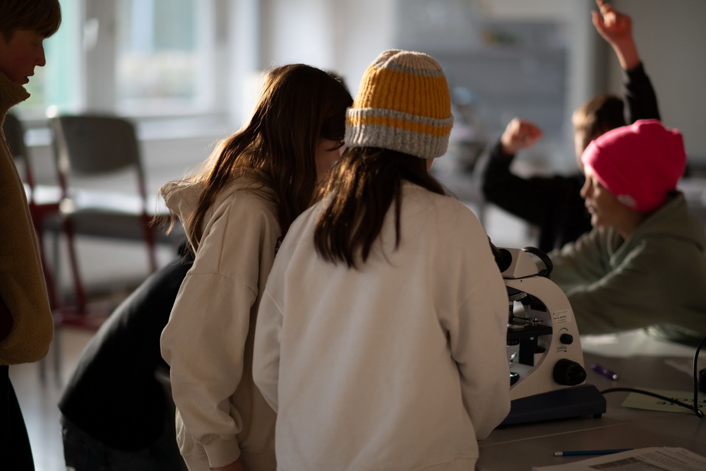 In der Biologie wurde es besonders anschaulich: Unter anderem konnten die Teilnehmenden ihr Lungenvolumen messen und so direkt erleben, wie naturwissenschaftliche Messungen am eigenen Körper funktionieren. Außerdem standen Beobachtungen an kleinen Säugetieren auf dem Programm – die Kinder schauten dabei ganz genau hin und lernten Merkmale und Besonderheiten lebender Mäuse kennen. Ergänzt wurde das Angebot durch das Arbeiten am Mikroskop: Mit viel Konzentration wurden Präparate betrachtet und Details sichtbar gemacht, die dem bloßen Auge verborgen bleiben.
