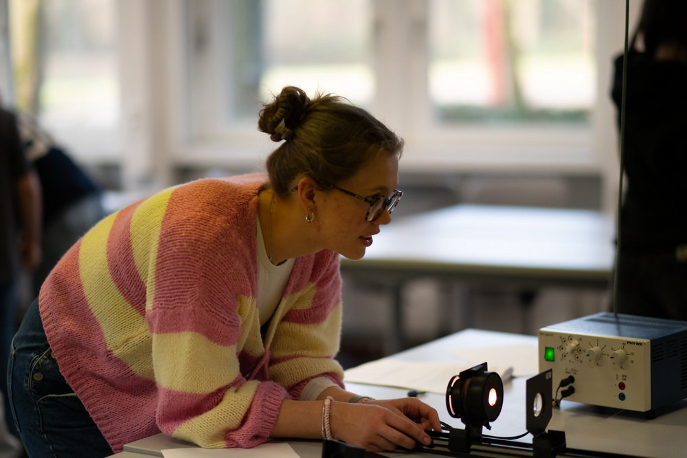 Für Begeisterung sorgte die Physik gleich doppelt: Bei Versuchen mit Strom standen sprichwörtlich die Haare zu Berge – ein eindrucksvoller Moment, der für Staunen und viele neugierige Nachfragen sorgte. Darüber hinaus konnten die Schülerinnen und Schüler auch an Licht- und Optikstationen experimentieren, etwa indem sie mit einer Lichtquelle und optischen Bauteilen Lichtwege untersuchten und Einstellungen ausprobierten.
