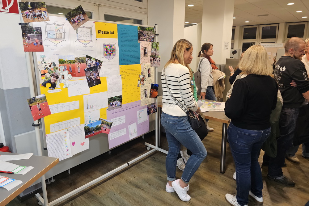 Erste Unterrichtsprodukte gaben einen lebendigen Einblick in den Schulalltag, an thematischen Ständen in Aula und Cafeteria informierten sich Eltern zur Europaschule, zum Medienkonzept, zur Schulsozialarbeit und zu Fachinhalten – und kamen dabei schnell sowohl miteinander als auch mit den Lehrerinnen und Lehrern des Georg-Büchner-Gymnasiums ins Gespräch. So klangen im Anschluss erfreulicherweise auch viele Rückmeldungen äußerst positiv: „wirklich toll“, „ansprechend“, „phantastisch, dass auch so viele Fachlehrerinnen und Fachlehrer hier sind“, „toller Austausch“. In diesem Sinne: Ein herzliches Dankeschön an die Schulpflegschaft, den Förderkreis für die Unterstützung, den Eltern der 6. Klassen für die zahlreichen und schmackhaften Essenspenden, dem Veranstaltungskomitee sowie allen anwesenden Eltern für das große Interesse und die vielen konstruktiven Gespräche.