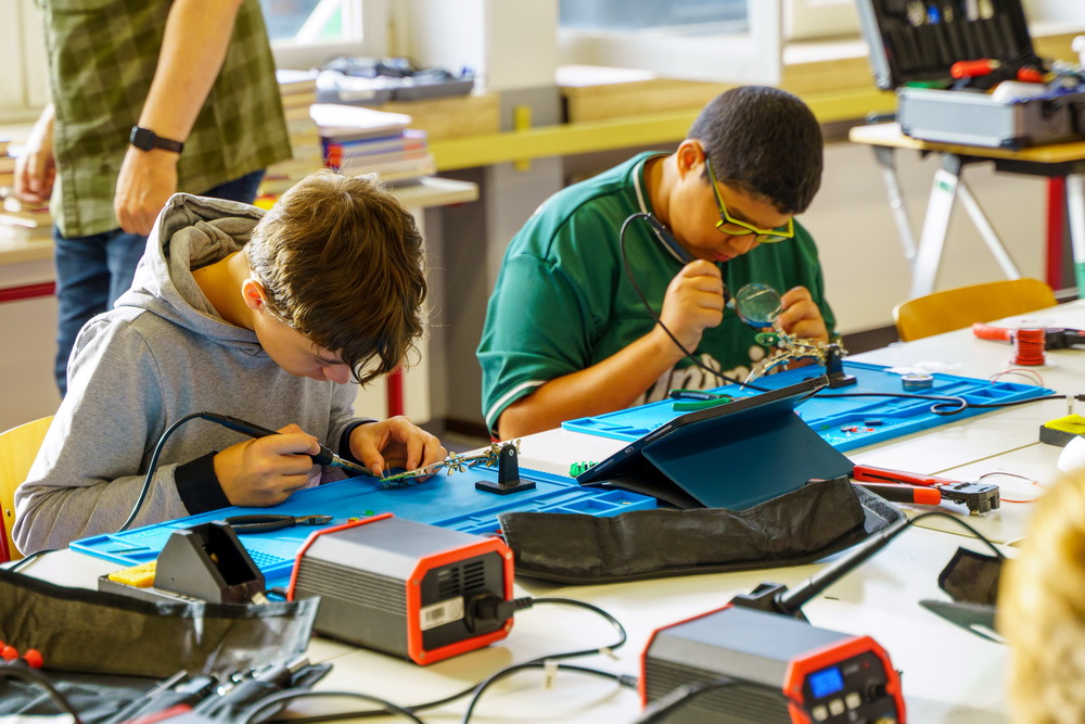 Gleich zu Beginn des neuen Schuljahres hieß es für 15 Schülerinnen und Schüler des Georg-Büchner-Gymnasiums: Lötkolben statt Schulbuch, Drohne statt Tafel. Eine Woche lang – vom 1. bis 5. September – tauchten die zwölf Jungs und drei Mädchen der 7. und 8. Klassen täglich von 8 bis 14 Uhr tief in die Welt von Technik, Informatik und Robotik ein.