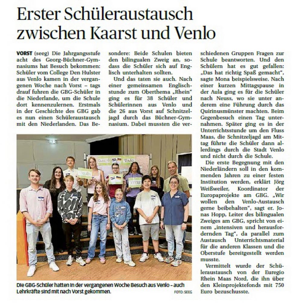 Erster Schüleraustausch zwischen Kaarst und Venlo