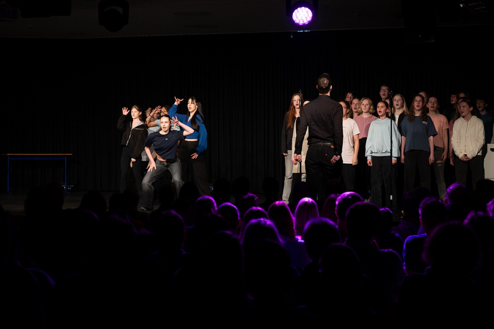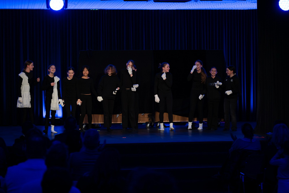 Ein besonders gelungenes Beispiel für fächerübergreifendes Arbeiten war die Rap-Ballade „Der Zauberlehrling“ der Klasse 6a unter Leitung von Herrn Lutgen – eine unfassbar moderne und zugleich respektvolle Annäherung an Goethe. Das Theater blieb zentraler Bestandteil des Abends: Mit „Der Schlotterwald“ (Leitung: Frau Baltes) zeigte die Jahrgangsstufe 6 eindrucksvoll ihr Können, bevor der Q1-Literaturkurs mit „Katzen in Stiefeln“ und einer zusätzlichen Tanzeinlage den Blick bereits in Richtung kommender Aufführungen lenkte.
