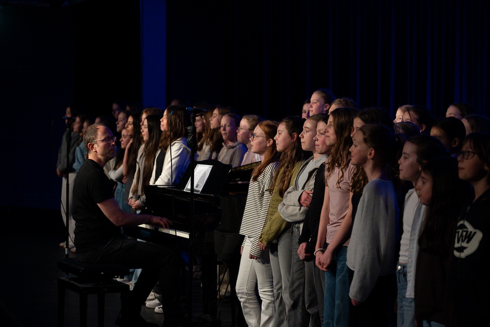 Musikalisch sorgten die Chor-Kids unter der Leitung von Herrn Lutgen gleich mehrfach für Gänsehautmomente – unter anderem mit „Einmal um die Welt“ (Cro), „Umbrella“ und später „Baller“ (Abor & Tynna). Hier wurde deutlich, wie breit und lebendig das musikalische Arbeiten am GBG aufgestellt ist. Ein besonderes Highlight im ersten Teil war das Theaterprojekt der Jahrgangsstufe 5: „Erdbeereis und Gummibärchen“ unter der Leitung von Herrn Oberländer zeigte eindrucksvoll, wie früh Schülerinnen und Schüler an darstellerisches Arbeiten herangeführt werden.