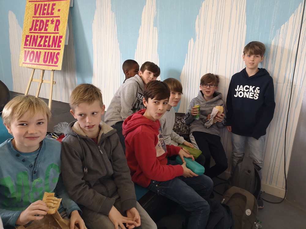 Als wir aus dem Theater hinausgingen, redeten noch alle über das Stück. Die Rückfahrt im Bus verging dann wie im Flug. Als wir dann wieder in der Schule waren, holten wir erst mal unser Mittagessen nach.
