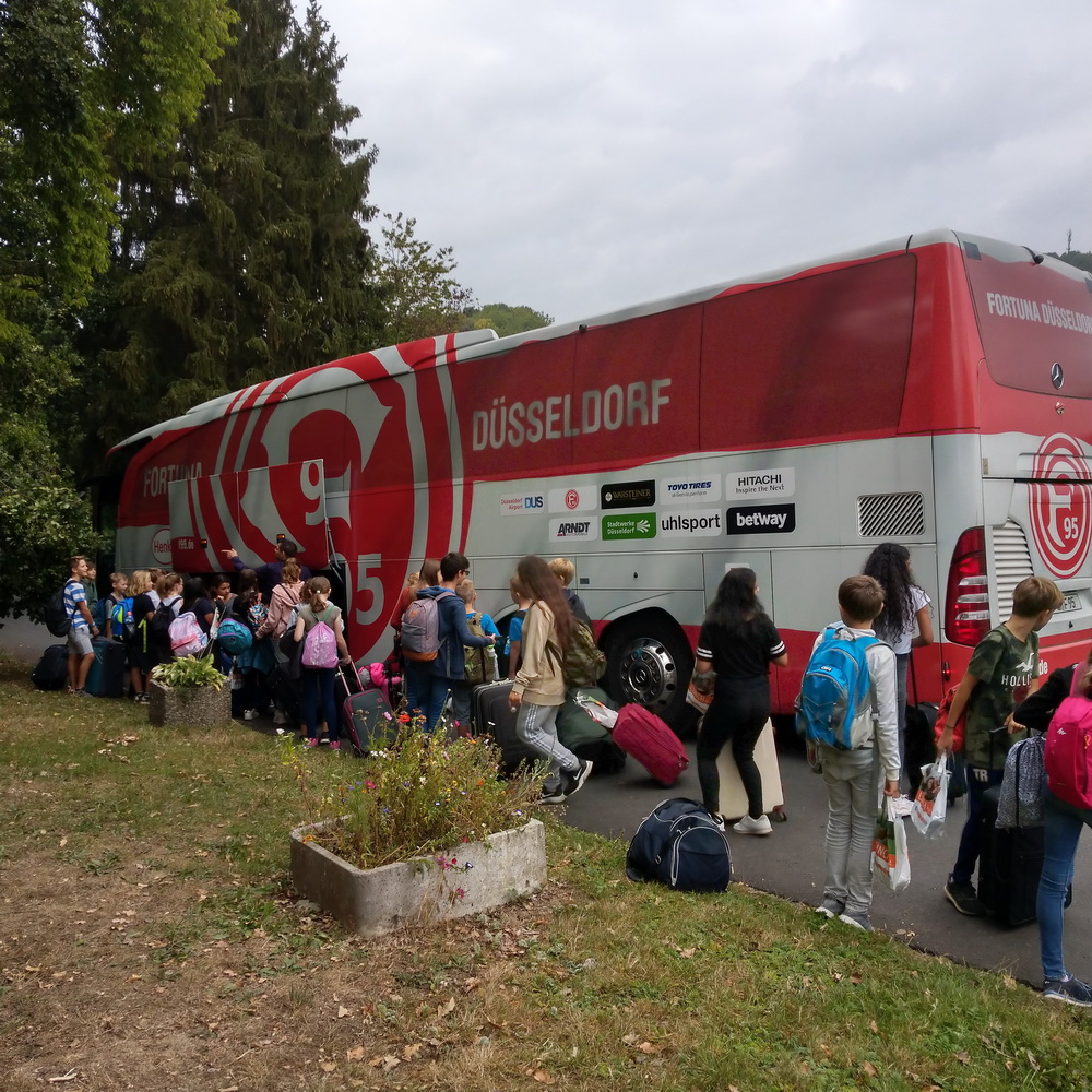 Nach der Schule am 4.09.2018 sind wir auf Klassenfahrt gefahren. Das Beste an der Fahrt war, dass wir mit dem Mannschaftsbus von Fortuna Düsseldorf fuhren.